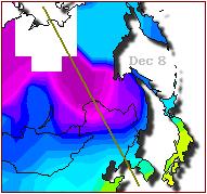 of cold along latitude 60° as the globe is pushed up and away from the Sun over New Zeland. This is then pulled forward over the India Face