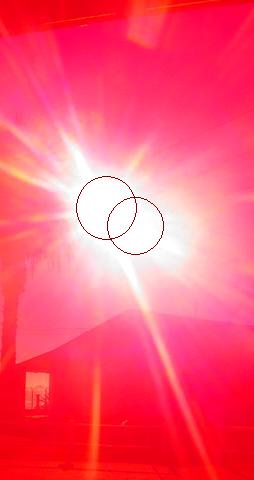 私は、8月4日の約19:30時にCAのSan Onofreにおいて、私がとった太陽の少数の写真を持っている。赤いフィルタの使用。 最初のものは、3時の位置の別個の球。次は非常に不思議だ。リック