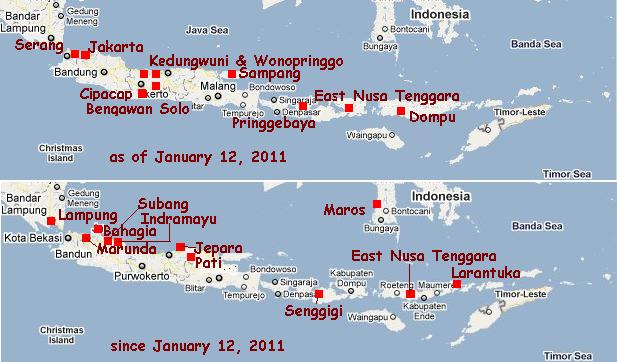 The big action during the week of January 12 to January 19, 2011 was in Java, where dramatic flooding