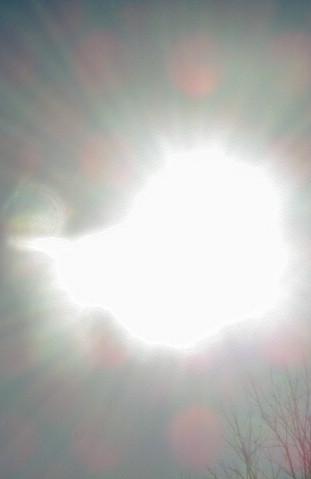 - Since late October I have observed a white object over the sun. At first, it may be mistaken for a Full Moon. The only time that it is visible is when the Sun is covered by clouds and the object is in an opening in the clouds. This object is completely round and white. As the Sun is coming from behind the clouds the object is illuminated by the Sun to the point that you can not diffentiate it from the Sun.