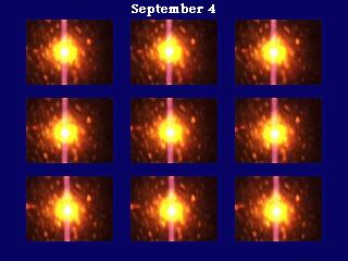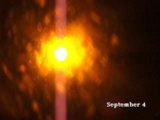 - Compare this writhing Fire Dragon to the photo taken on August 8 and August 21 and August 22 and August 25, when other racks of shots were taken. Again, you can see the Fire Dragon writhe! From day to day, the Dust Cloud is visible and changing somewhat in position as it streams toward the Earth from the vicinity of the Sun. Here the fine Dust Cloud can be seen, as it is swarming toward Earth.