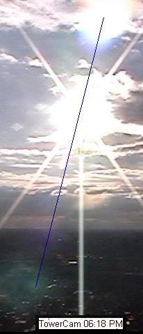 - It was real cloudy in Cincinnati 6-28-03. Then the clouds opened. This was the first pic I got showing double sun, one on top of the other. Then I caught the other photos which started with bright light at top, then to side and near bottom as sun set.