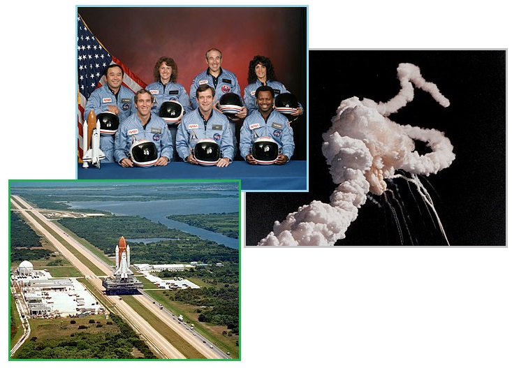 катастрофу “Челленджера” в 1986 г., взорвавшегося в космосе из-за неисправного уплотнительного кольца. Весь экипаж из 7 человек погиб.